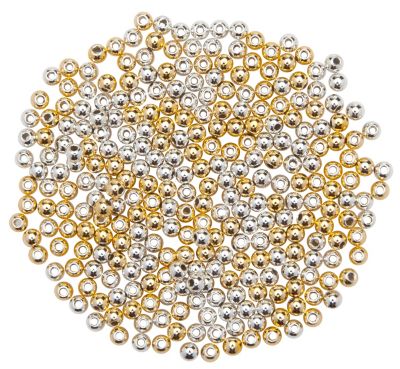 Rundperlen, Farben: gold und silber, Größe: 2 mm Ø, Inhalt: 400 Stück. Material: Acryl.