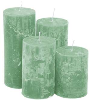 Rustikale Kerzen, abgestuft, Farbe: mint, Größen: 8 cm, 10 cm, 12 cm und 14 cm hoch, 6 cm Ø, Inhalt: 4 Stück.