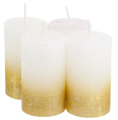 Rustikale Kerzen, weiß/gold-metallic, 10 x 6 cm, 4 Stück