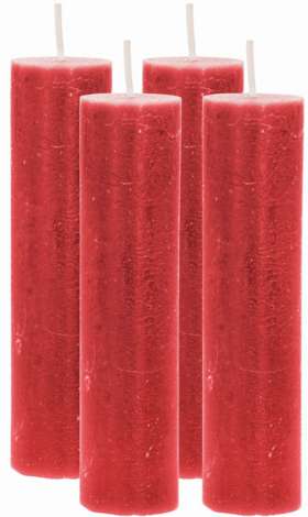 Rustikale Stabkerzen medium, rot, 14 x 3,5 cm, 4 Stück