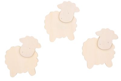 Schafe aus Holz, zum Bemalen und Verzieren, Farbe: natur, Größe: 8 x 9 cm, Stärke: 2 cm, Inhalt: 3 Stück.