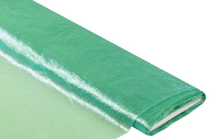 Hauchfeiner Schimmer-Organza "Fairytale" mit fantastischem Glanz-Effekt, leicht strukturiert im Griff, transparent, Farbe: grün/blau changierend, Breite: 130 cm, Gewicht: ca. 35 g/m². Material: 70 % Polyester, 30 % Polyamid.