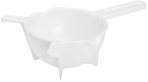 Schmelzkelle für Wachs, Seife oder Schokolade. Lebensmittelecht und temperaturbeständig bis 100°C. Innendurchmesser Kelle: 11 cm Ø, Tiefe: ca. 6,5 cm, Fassungsvermögen: 250 ml.