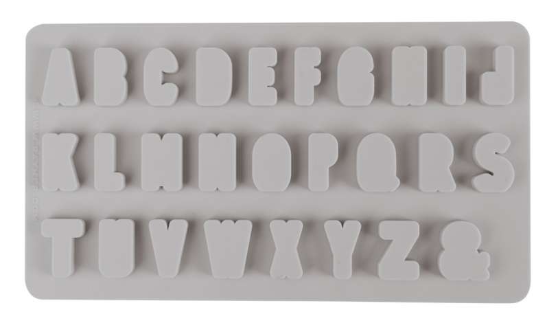 Gießform "Mini-ABC" aus Silikon, frost- und hitzebeständig, 26 Buchstaben und "&". Motivgrößen: 2,1 cm. Geeignet für Raysin/Gießmasse und Gießbeton. Materialverbrauch: Raysin/Gießmasse 100 g, Gießbeton 120 g.