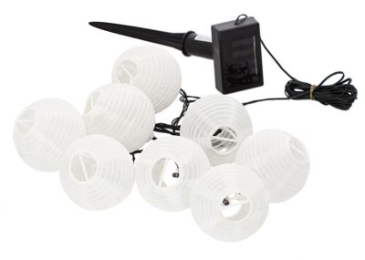 Solar LED Lampion-Lichterkette, mit 8 LED-Lampions, für den Außenbereich geeignet, Gesamtlänge: 3,5 m, Kettenlänge: 3 m, Abstand: 0,5 m, Farbe Lampions: weiß, Lichtfarbe: warmweiß, linear, solarbetrieben, mit Ein-/Aus-Schalter.