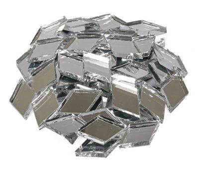 Spiegel-Mosaik Rauten, Größe: 20 x 10 mm, Stärke: 4 mm, Inhalt: 125 g = ca. 155 Stück, frostbeständig. Ausreichend für eine Fläche von 14 x 14 cm.
