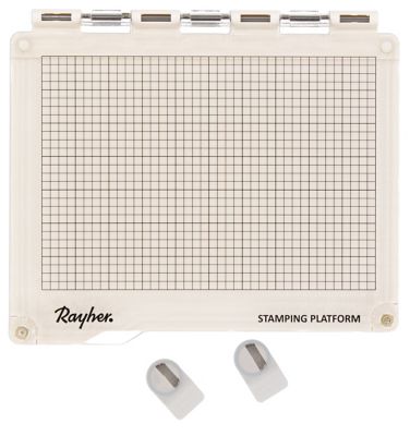 Stempelplattform, transparente Acrylplatte mit aufgedrucktem Raster in cm, magnetisches Unterteil mit Antirutschbeschichtung, inkl. 2 Magneten, Stempelfläche: 22,5 x 16 cm, Produktgröße: 23,5 x 20,5 x 1,8 cm.