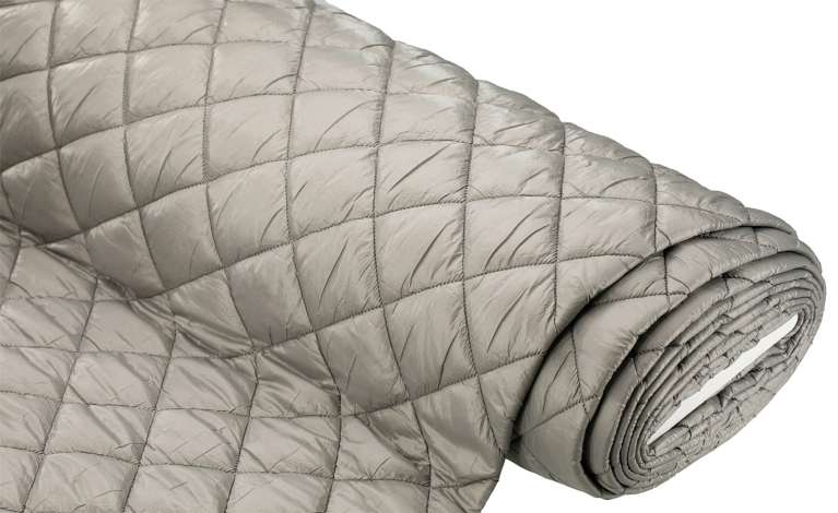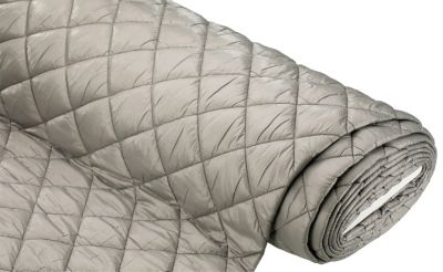 Steppstoff "Rauten", Farbe: hellgrau, wattiert, Rautengröße: 6,5 x 6,5 cm, Stärke: 1 cm, Breite: 130 cm, Gewicht: ca. 310 g/m². Material: 100 % Polyester.