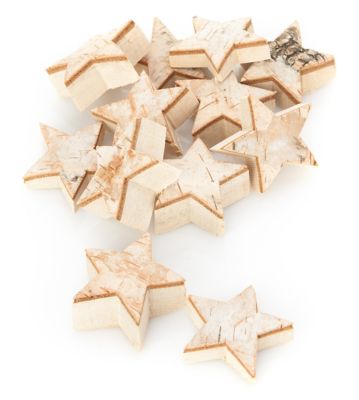 Sterne aus Birkenholz, naturbelassen, Größe: 4 cm, Stärke: 1–2 cm, Inhalt: 12 Stück.