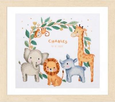 Stickbild "Dschungeltiere", zum Besticken in Kreuz-, Spann- und Rückstich nach Zählvorlage (ca. 5,4 Stiche/cm). Komplettpackung: Anleitung, Zählvorlage, Garn, Sticknadel, inkl. Alphabet. Ohne Rahmen. Stofffarbe: weiß. Größe: 36 x 33 cm, Stickerei 33 x 30 cm. Material: Stoff und Garn 100 % Baumwolle.