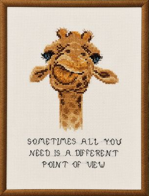 Stickbild "Giraffe", zum Besticken in Kreuzstich nach Zählvorlage (ca. 5,4 Stiche/cm). Komplettpackung: Anleitung, Zählvorlage, Garn, Sticknadel. Ohne Rahmen. Stofffarbe: ecru. Größe: 18 x 24 cm. Material: Stoff und Garn 100 % Baumwolle.