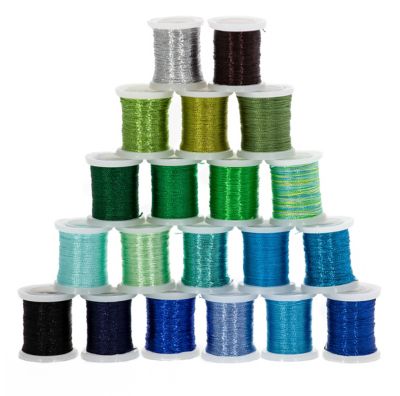 Stickgarn für Fadengrafik geeignet, Farbe: Blau-Grüntöne, Inhalt: 20x 25 m-Rollen = 500 Meter. Material: 100 % Polyester.