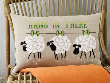 Stickkissen Schafe"Hang-in-there", zum Besticken in Kreuzstich nach Zählvorlage (ca. 8 Fäden//cm), halbkonfektioniert, OHNE Stoff für Rückwand. Ohne Kissenfüllung. Komplettpackung: Anleitung, Zählvorlage, Garn, Sticknadel. Stofffarbe: leinen. Größe: 58 x 40 cm. Material: Stoff 100 % Leinen, Garn 100 % Baumwolle.