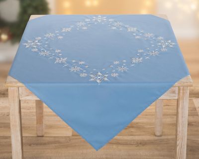 Stickmitteldecke "Eiszeit", zum Besticken in Knötchen-, Spann-, Margeriten-, Stiel- und Plattstich. Vorgedrucktes Motiv, randfertig gesäumt. Komplettpackung: Anleitung, Garn, Sticknadel. Stofffarbe: blau. Größe: 95 x 95 cm. Material: Stoff 51 % Baumwolle, 49 % Polyester, Garn 100 % Baumwolle.