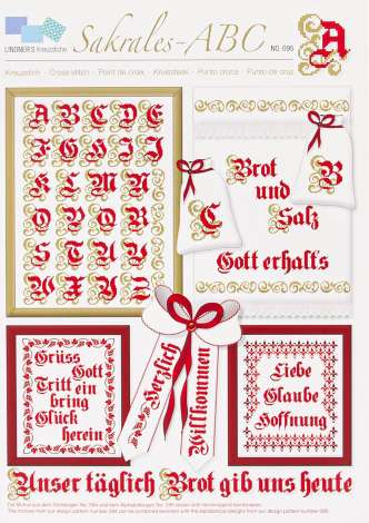 Stickvorlage "Sakrales ABC". Die gotischen Schriftzeichen basieren auf der spätmittelalterlichen Kalligrafie und den Anfängen der Buchdruckerkunst. Diese traditionelle Schrift ist bestens geeignet für Weihkorbdecken, Spruchbänder, Türschleifen, Bilder uvm. Bogen mit 6 Seiten, inkl. Grundanleitung und farbiger Zählvorlage. Größe: 21 x 29,5 cm.