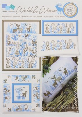 Stickvorlage "Wald & Wiese". Gestalten Sie mit diesen Kreuzstich-Vorlagen Bilder, Wandbehänge, Kissen uvm. Bogen mit 6 Seiten, inkl. Grundanleitung und farbiger Zählvorlage. Größe: 21 x 29,5 cm.