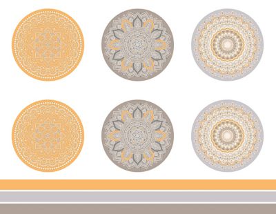 Exklusiv von buttinette: Stoff-Coupon "Mandala", Farbe: taupe/orange, für 3 runde Kissen à 40 cm Ø oder 3 eckige à 50 x 50 cm, Motivgröße Mandala: 42 cm Ø, Seitenstreifen: 6 cm breit, Coupongröße gesamt: 124 x 160 cm, Gewicht: ca. 130 g/m². Material: 100 % Polyester.