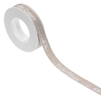 Stoffband "Frohe Ostern", Farbe: natur, Breite: 15 mm, 5 m pro Rolle. Material: 100 % Polyester.