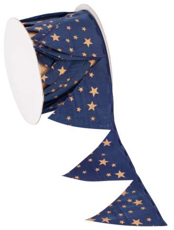 Stoffband "Ziehstern", Farbe: dunkelblau-kupfer, Breite: 5 cm, 2,5 m pro Rolle. Material: 100 % Polyester.