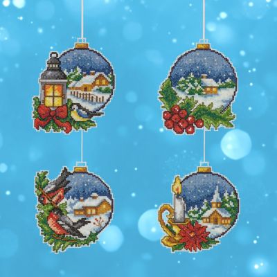 Stramin-Aufhänger "Weihnachtskugeln", im 4er-Set. Die Motive werden in Kreuzstich auf Plastik-Stramin gestickt (ca. 5,4 Stiche/cm). Komplettpackung: Anleitung, Zählvorlage, Garn, Sticknadel. Größe: 2x 9,5 x 11 cm, 10 x 10 cm, 10 x 11 cm,. Material: Plastik-Stramin, Garn 100 % Baumwolle.
