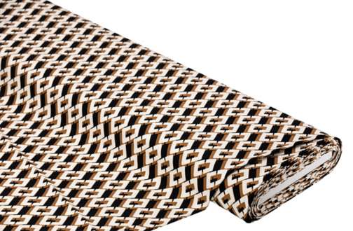 Stretch-Bengalin "Retro", Farbe: braun-color, längselastisch, Muster: 3,5 x 3 cm, Breite: 145 cm, Gewicht: ca. 235 g/m². Material: 74 % Viskose, 22 % Polyamid, 4 % Elasthan.
