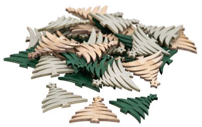 Streuteile "Baum" aus Holz, Farben: dunkelgrün, hellgrün, natur, Größe: 4 cm, Inhalt: 36 Stück.