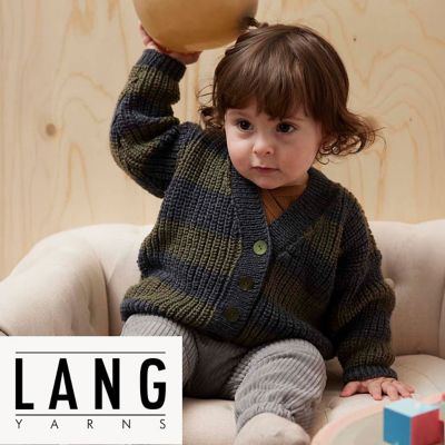 Strickanleitung – Cardigan "Théo" aus Lang Yarns Merino 200 Bébé. Diese Jacke aus der Qualität Lang Yarns Merino 200 Bébé ist eine vielseitig verwendbare Jacke mit V-Ausschnitt und einem Streifenmuster.