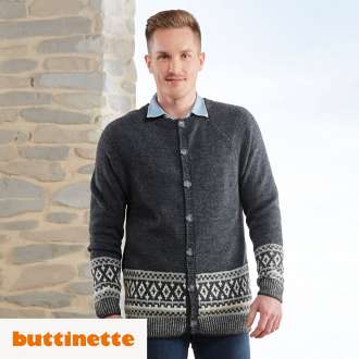 Strickanleitung – Jacquard-Cardigan aus Woll Butt Söckli. Papa und Sohn im Partnerlook: Beide Jacken bestechen mit einer traumhaften Norwegerbordüre und zweifarbigen Bündchen; der Rest wird glatt rechts gestrickt. Beim Herrenmodell verläuft die Bordüre oberhalb von Saum- und Ärmelbündchen. Die Jacke sieht zu Jeans einfach klasse aus und wird aus seiner Garderobe bald nicht mehr wegzudenken sein!