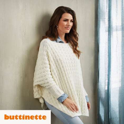 Strickanleitung – Poncho-Pullover Heidi. Poncho oder Pullover? Dieses Modell ist eine gelungene Mischung aus beidem. Der Fledermausschnitt ist mega-gemütlich, und dank dem leichten Garn Woll Butt Heidi wird das Teil auch nicht zu schwer. Ein ausdrucksstarkes Hebemaschenmuster bildet die Basis für den Poncho-Pullover, nur die Ärmelbündchen bekommen ein breites Rippenmuster.