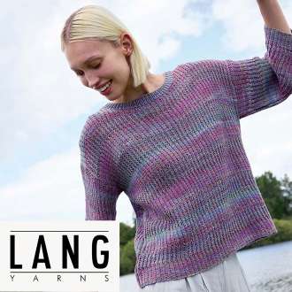 Strickanleitung – Pullover "Yannie" aus Lang Yarns Illusion. Ein toller Pullover der zu vielen Outfits passt – Ganz egal ob zur Jeans oder zum Rock. Das schöne Strickmuster in Kombination mit den traumhaften Farben machen Lust auf Frühling und Sommer. Stricken Sie Ihren perfekten Allrounder aus der Qualität Illusion von Lang Yarns.