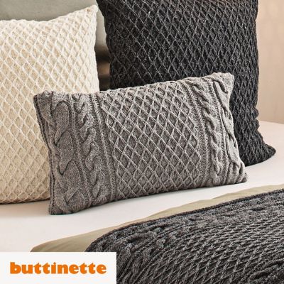 Strickanleitung – Rechteckiges Kissen aus Woll Butt Socke. Das rechteckige Kissen, das ein Rautenmuster sowie ein beidseitiges Zopfmuster ziert, versprüht absoluten Wohlfühl-Charme!