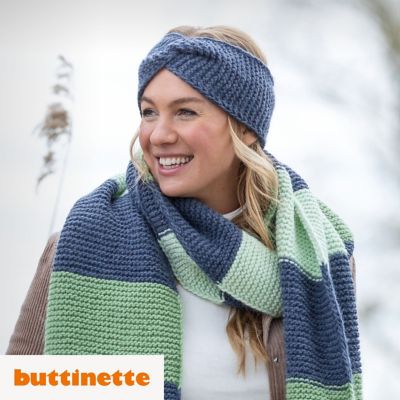 Strickanleitung – Stirnband aus Woll Butt Fabiola. Mit unserem Wollpaket Fabiola machen Sie Ihre Outdoor-Garderobe fit für den Herbst und Winter: Schal und Stirnband werden kraus rechts gestrickt. Das – bis auf die Blockstreifen beim Schal sowie die Verschlingungen am Stirnband – sehr schlichte Design passt zu jedem Kleidungsstil und lässt sich toll kombinieren. So geben Sie Minusgraden keine Chance!