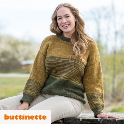 Strickanleitung – XL-Kuschelpullover aus Woll Butt Merle. Wunderbar weich und äußerst trageangenehm kommt dieser XL-Kuschelpullover daher. Er ist durchgehend glatt rechts gestrickt; vorne und hinten bis zu den Armausschnitten in Runden, ebenso die Ärmel an sich. Für die Abwechslung sorgen farblich harmonische Blockstreifen, für die Lässigkeit der gerade, lockere Schnitt sowie überschnittene Schultern – so cosy!