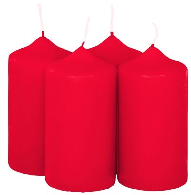 Stumpenkerzen, Farbe: rot, in verschiedenen Größen, Inhalt: 4 Stück.