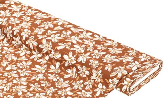 Sweat / French Terry "Blumen", Farbe: hellbraun, bi-elastisch, Breite: 155 cm, Gewicht: ca. 210 g/m². Material: 95 % Baumwolle, 5 % Elasthan.