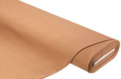 Baumwoll-Sweatstoff "Basic", Farbe: camel, leicht dehnbar, Breite: 170 cm, Gewicht: ca. 240 g/m². Einlaufwert: 4–6 %. Material: 100 % Baumwolle.