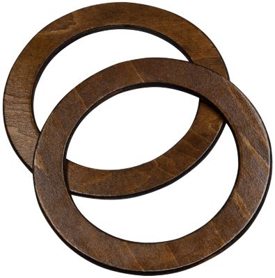 Runde Taschengriffe zum Annähen für Tragetaschen, Handtaschen, Shopper, Bastelarbeiten und vieles mehr, verleihen Ihrer Handarbeit die persönliche Note. Farbe: braun. Material: Holz. Größe: 13,5 cm Ø. Inhalt: 1 Paar.