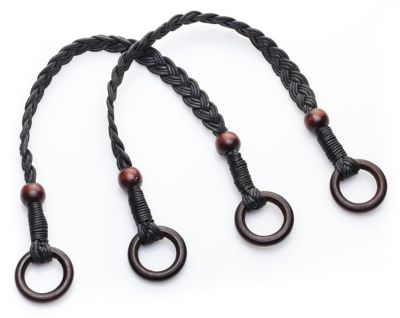 Taschengriffe geflochten, zum Annähen an diverse Taschen, Farbe: schwarz, Holzringe und -perlen dunkelbraun, Länge: 49 cm, Inhalt: 1 Paar.