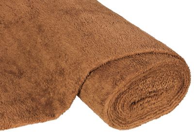 Teddyplüsch in Lammfelloptik, mit glatter Rückseite, Florhöhe: 10 mm, Farbe: rostbraun, Breite: 150 cm, Gewicht: ca. 225 g/m². Material: 50 % Polyacryl, 50 % Polyester.