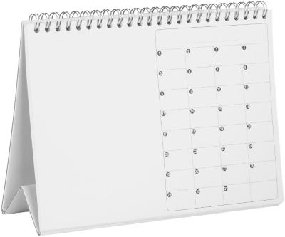 Tischkalender zum Stellen, mit Spiralbindung, Farbe: weiß, Größe: 21 x 14,8 cm (DIN A5), Gewicht: 250 g/m².