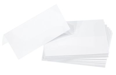 Tischkarten, Farbe: weiß, Größe: 9 x 10 cm, auf 4,5 cm genutet, Gewicht: 220 g/m², Inhalt: 25 Stück.