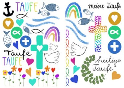 Transfermotive "Taufe", Motivgröße: 1,5–13 cm, Inhalt: 2 Bogen in der Größe DIN A5.