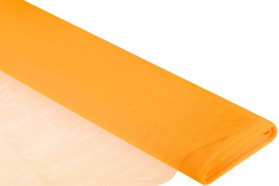 Tüll mit flammhemmender Ausrüstung, Farbe: neonorange, Waben: 1,5 mm Ø, Breite: 145 cm, Gewicht: ca. 20 g/m². Material: 100 % Polyamid.
