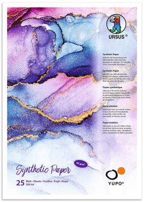 Ursus Synthetic-Papier, besonders glatte Oberfläche für faszinierende Farbverläufe mit Alcohol Ink, Aquarellfarben, Tinte u.v.m., Farbe: offwhite, Inhalt: 25 Blatt, Größe: 21 x 29,7 cm (DIN A4), Gewicht: 85 g/m².