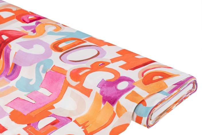 Javanaise "ABC" im Leinen-Look, Farbe: orange, Motivgröße H: 11 x 6 cm, Breite: 140 cm, Gewicht: ca. 150 g/m². Material: 100 % Viskose.