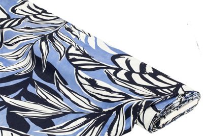 Viskose-Blusenstoff/Javanaise "Blätter" im Leinenlook, blau-color