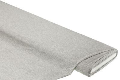 Viskose-Jersey Uni, Farbe: grau-meliert, bi-elastisch, Breite: 155 cm, Gewicht: ca. 170 g/m². Material: 95 % Viskose, 5 % Elasthan.