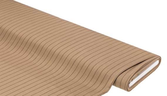 Viskose-Leinen "Streifen", Farbe: braun/schwarz, Streifen längs verlaufend, Streifenbreite: 2 cm, Breite: 150 cm, Gewicht: ca. 200 g/m². Material: 55 % Leinen, 45 % Viskose.