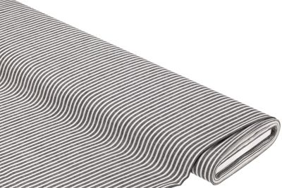 Viskose-Leinen "Streifen", Farbe: grau/weiß, Streifen längs verlaufend, Streifenbreite weiß: 3 mm, Streifenbreite grau: 5 mm, Breite: 145 cm, Gewicht: ca. 180 g/m². Material: 50 % Leinen, 50 % Viskose.