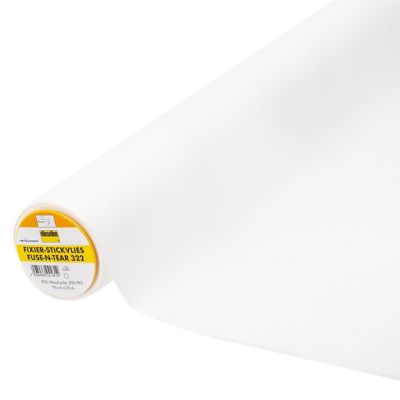 Vlieseline ® Fixier-Stickvlies, Farbe: weiß, einseitig aufbügelbar (nicht dauerhaft haftend), Stärke: 0,2 mm, Breite: 90 cm, Gewicht: ca. 48 g/m². Material: 80 % Viskose, 20 % Polyester.